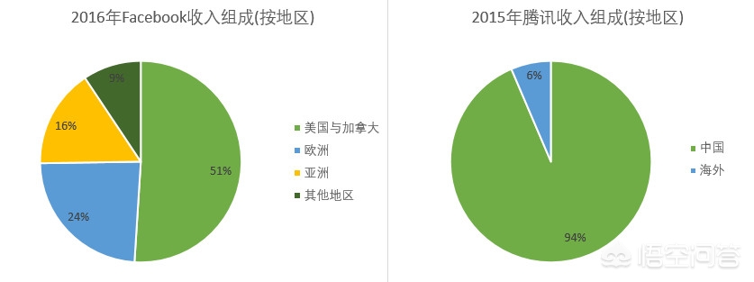 Facebook的用户遍布全球,而腾讯的主要用户是中国用户。前者比后者的市场大。