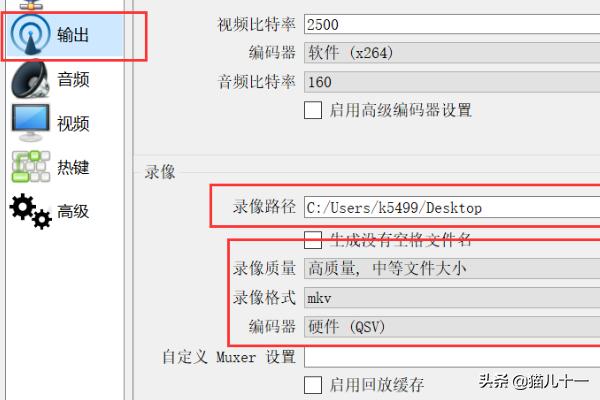 4.添加捕捉屏幕之后,即是把整个屏幕会被录下来,点击右边的设置。在输出的选项下,分别设置文件路径,画质,编码器。一般编码器使用默认的就可以了