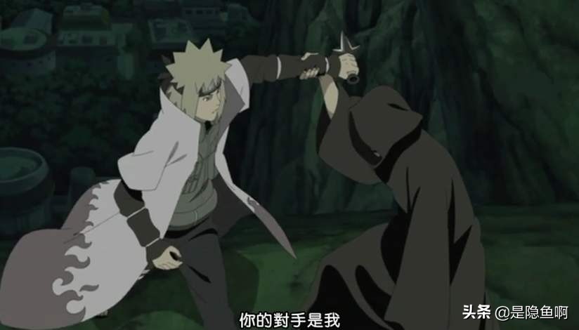 第四代火影为了阻止九尾,和带土发生战斗,并将其击败,然后将九尾一分为二,九尾的阴性查克拉用尸鬼封印连同自己封印入死神的体内,阳性的查克拉则以八卦封印封印入鸣人体内。随后牺牲。