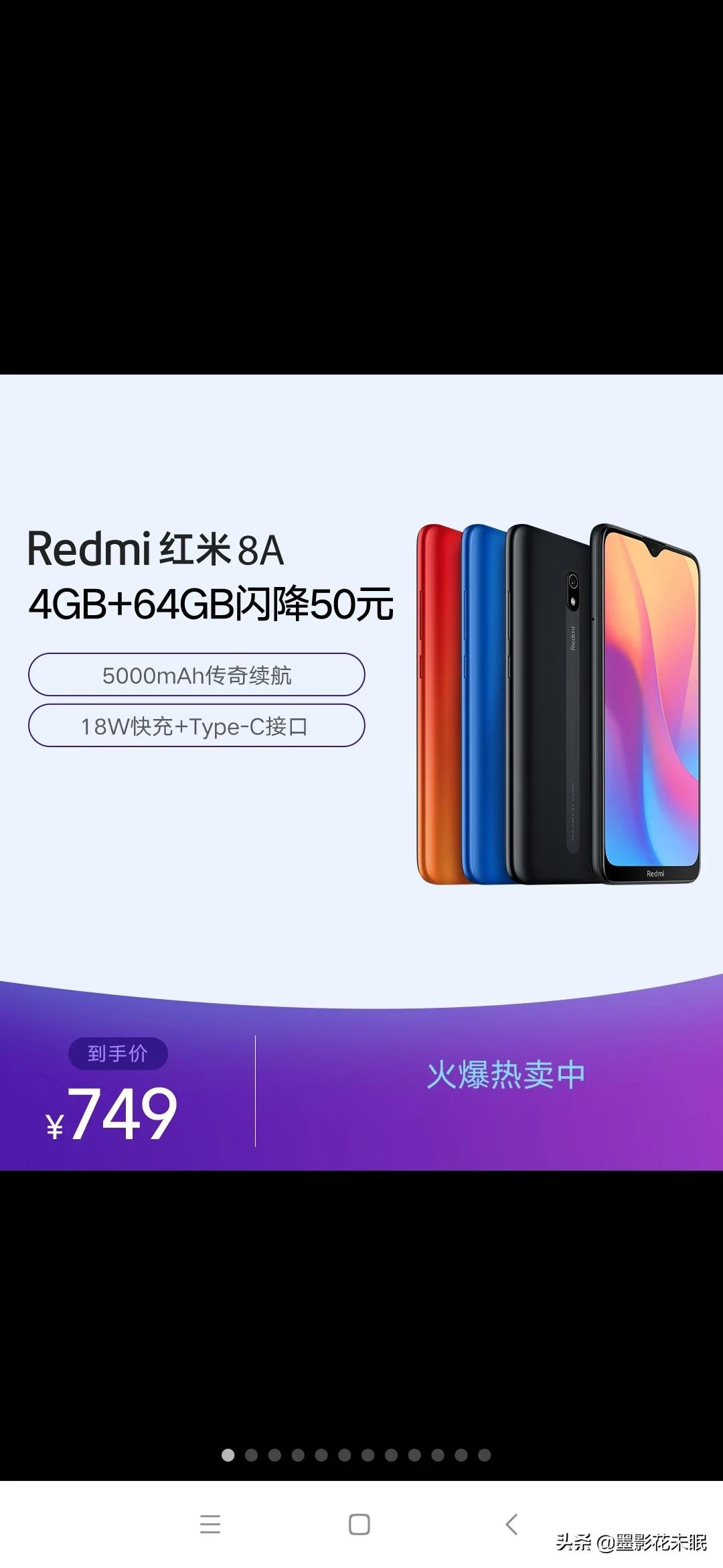 红米8a支持18w快充,5000毫安大电池,439处理器。属于后置单射,超大外放音乐。Type-c接口。4加64g内存。不打游戏平时的话问题不大。毕竟缓冲能缓存多少?而且拍照日长也足够用的。
