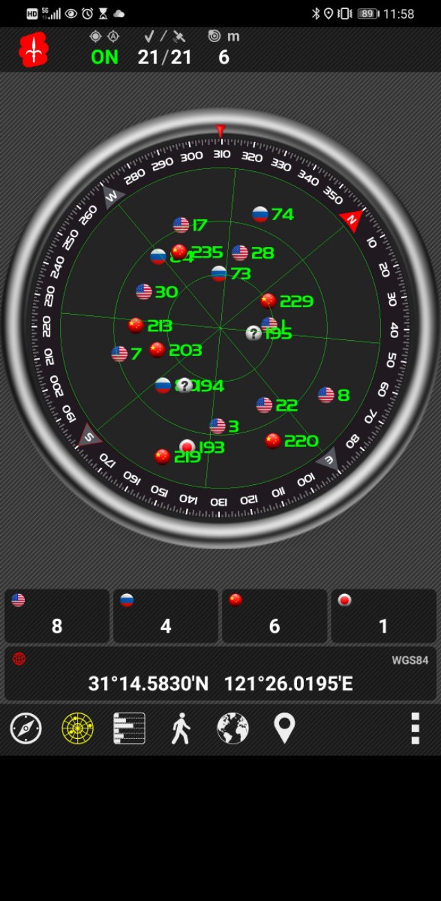 所以一般情况我们普通用户是不知道现在使用的是那颗星,你手机里定位模块随时随地都在链接信号最佳的几颗星,不一定是一个国家的,通过复杂的计算,得出最佳的定位信号,各类使用定位信号的应用APP就可以大显身手。