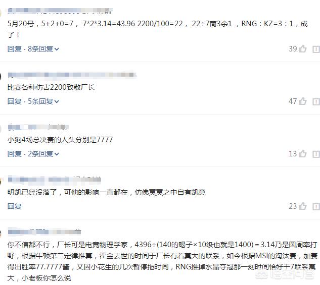 对此网友表示:在本次MSI比赛还有各种打野伤害2200致敬厂长,UZI在总决赛对阵KZ四场的战绩都是7777,厂长已经没落了可他的影响力却还在,冥冥之中自有凯意,给你们说个事,你可能都不信厂长是电竞物理学家。