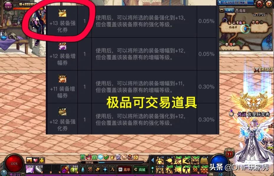 DNF5个使徒神秘宝物礼盒不小心开到了+13强化卷,请问怎么卖比较合适