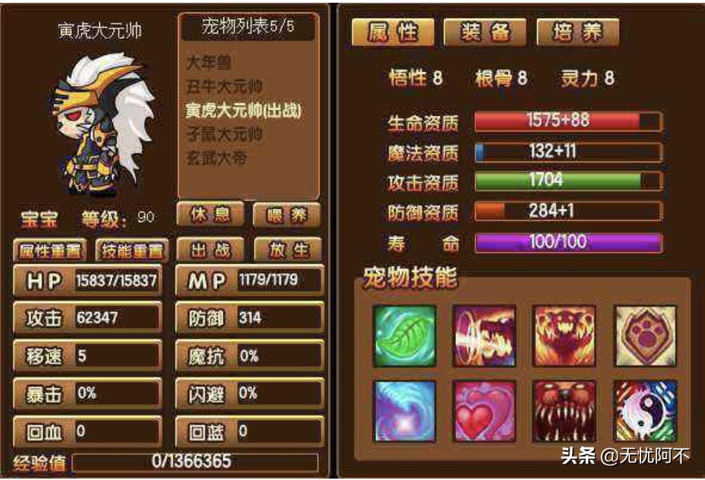 3、宠物刷技能的等级:2,5,8,11,14,17,20,23,26,29,32,35,38,41,44,47…… 之后每三级领悟一次!技能上限与悟性有关!