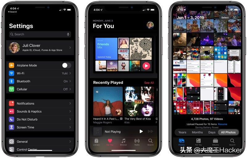如果你现在正在使用iPhone 11 Pro/Max、iPhone Xs/Max、iPhone X中的任意一款机型,由于OLED自发光的特性,理论上来说使用深色模式可以更加的省电。