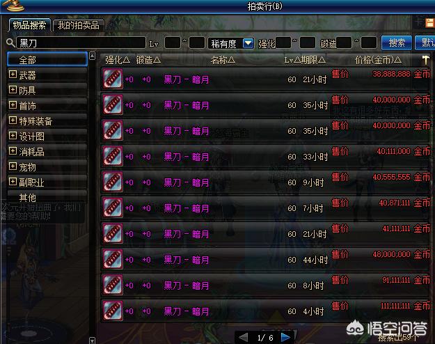 黑刀暗月是一把很稀有的太刀,以前只能通过加百利获得,现在不知道加百利还出不出售,此外,黑刀的外观也很棒,剑身整体均为黑色,很好看。目前,本人所在的跨6,一把黑刀5千多万,很贵,不适合用来武器幻化,土豪除外。