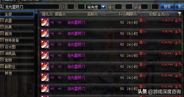 既然出了武器幻化,对于嗅觉灵敏的商人们自然是嗅到了商机,一些好看的武器价格瞬间都翻了一番,比如流光星陨刀前段时间只用30W一把的价格,由于武器幻化的出现一下飙升到100W,价格直接翻了三倍。