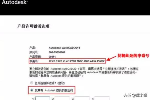 1、首先我们安装好CAD产品,安装完成打开会提示激活,出现这一步,上方红框是序列号,我们用Ctrl+C复制。