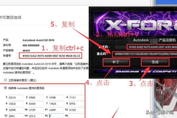 5下面激活的重点来了,按照图示序号先后进行操作生成激活码。