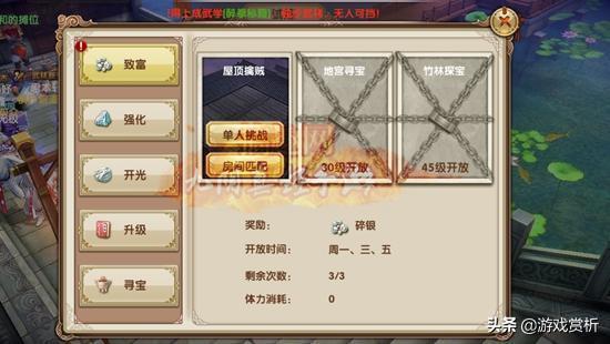 还有就是靠江湖活动了,如果来到NPC处查看活动,发现今天是正好能够进入致富这个活动,那么恭喜你可以免费赚钱了。这个活动是击杀盗贼会掉落钱币,打的越快越好,因为活动是有时间限制的,并且每天只能挑战3次!所以是一个必须要刷的赚钱活动。而且在等级高了以后会解锁后续更多的致富活动!