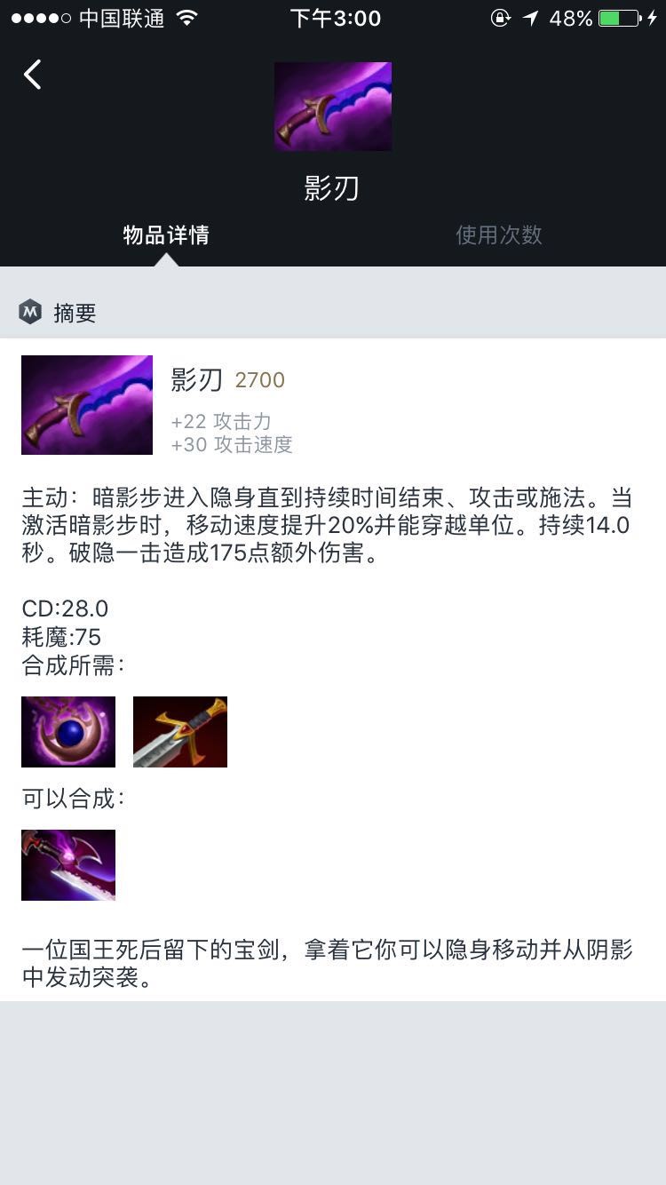 影刃,大家更喜欢称呼它为隐刀。主动技能暗影步可以使得英雄进入隐身状态并且可以得到20%移动速度的提升,使得先知在带线时得以快速脱离战场。我们可以假想一下在先知带线时,敌方英雄来抓,此时先知隐刀传送到另外一路兵线继续带线。而且先知往往可以躲在树林中看着小树人带线或者去敌方野区打野偷发育。那么敌方英雄在花费人力物力抓先知的同时,还要购买显影之尘、真眼等辅助道具,还要花费不匪的财力。可以说隐刀也是先知带线的一大利器。
