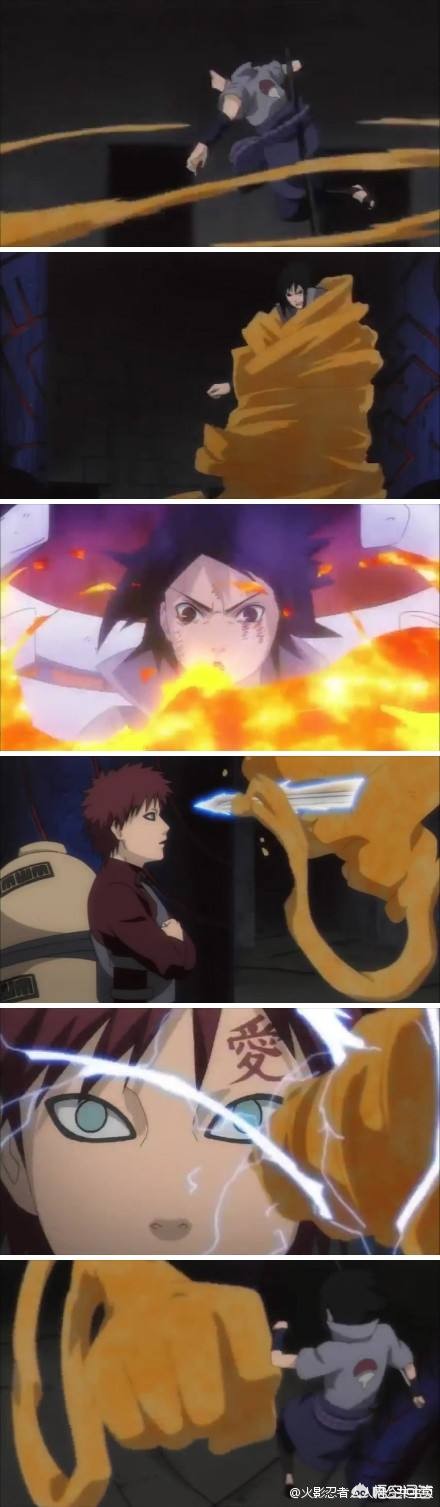 再加上鸣人的关系,我爱罗也知道如果鸣人看见佐助变成这样内心肯定也将会是难以接受,所以在阻止佐助的同时我爱罗也在不听的劝说佐助,奈何佐助一点也听不进,查克拉变得越来越冷血,每个招式都带着杀意,想起第一次与佐助交手时走火入魔的是自己,现在同样的两人换做佐助变成了这样,不免让我爱罗心中感伤。佐助还是那么要强,只是在黑暗中越陷越深无法自拔,我爱罗是自己难过,也是替鸣人难过吧