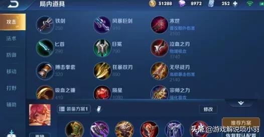 1、花木兰出装,影忍之足,暗影战斧,反伤刺甲,不祥征兆,魔女斗篷,破甲弓;