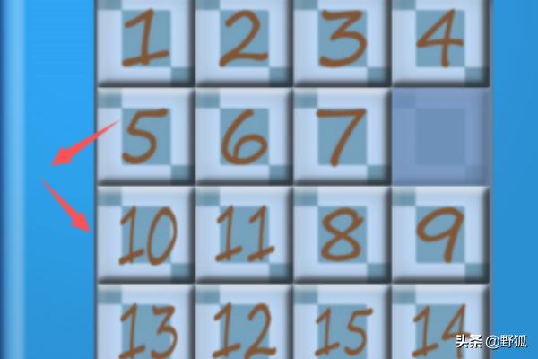 5.第3排数字,看到下图中,推盘的顺序,数字13应该在数字9下面,数字13后面跟14,15。