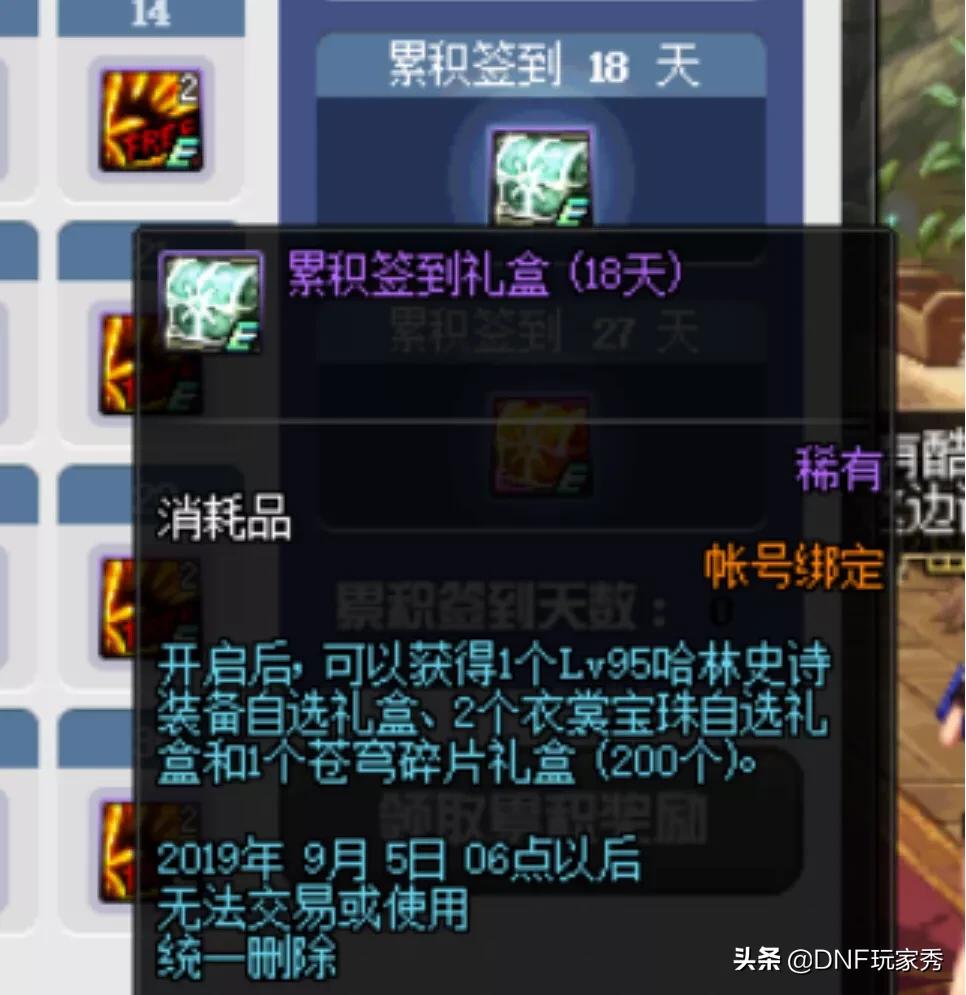 累计18天,再获得一个哈林史诗自选,2个衣服附魔宝珠自选和200个苍穹碎片;