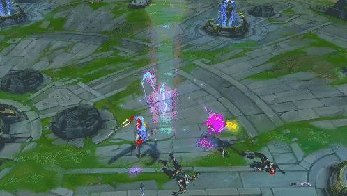E技能更是跳起了彩虹舞蹈,特别符合如今市面上比较热火的一个经典背景音乐“爱的魔力转圈圈”,让人在使用技能的同时不忘自行配对BGM,也让整个人的英雄使用提升了不少体验,多重彩色,似乎是紫色盖伦皮肤的核心。