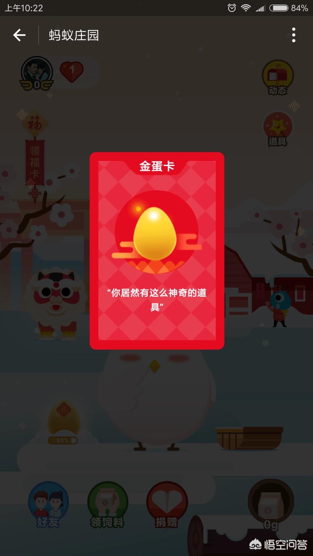 三 今天支付宝开通了蚂蚁庄园领福字,大家可以到里面收取金蛋获得福卡,我领到了一张。