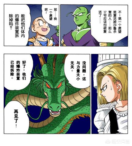 第三,还有就是沙鲁篇快结束的时候,他们找到龙珠并召唤神龙许愿最后一个愿望是留给了克林的。克林的愿望就是希望能够去掉18号体内的炸弹,然后让18号像一个正常的少女一样生活。