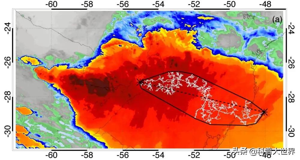 就像这样的一道闪电,需要一片极为巨大的带电积雨云,那么这道闪电是在哪里发现的呢?它于2018年10月31日出现于巴西南部地区,是迄今为止人类观察到的直线长度最长的闪电。如果以它曲折的长度来看的话,那它的长度或要翻上一倍,如果将这条闪电的分支长度都加起来的话,总长度甚至要在上万公里以上。