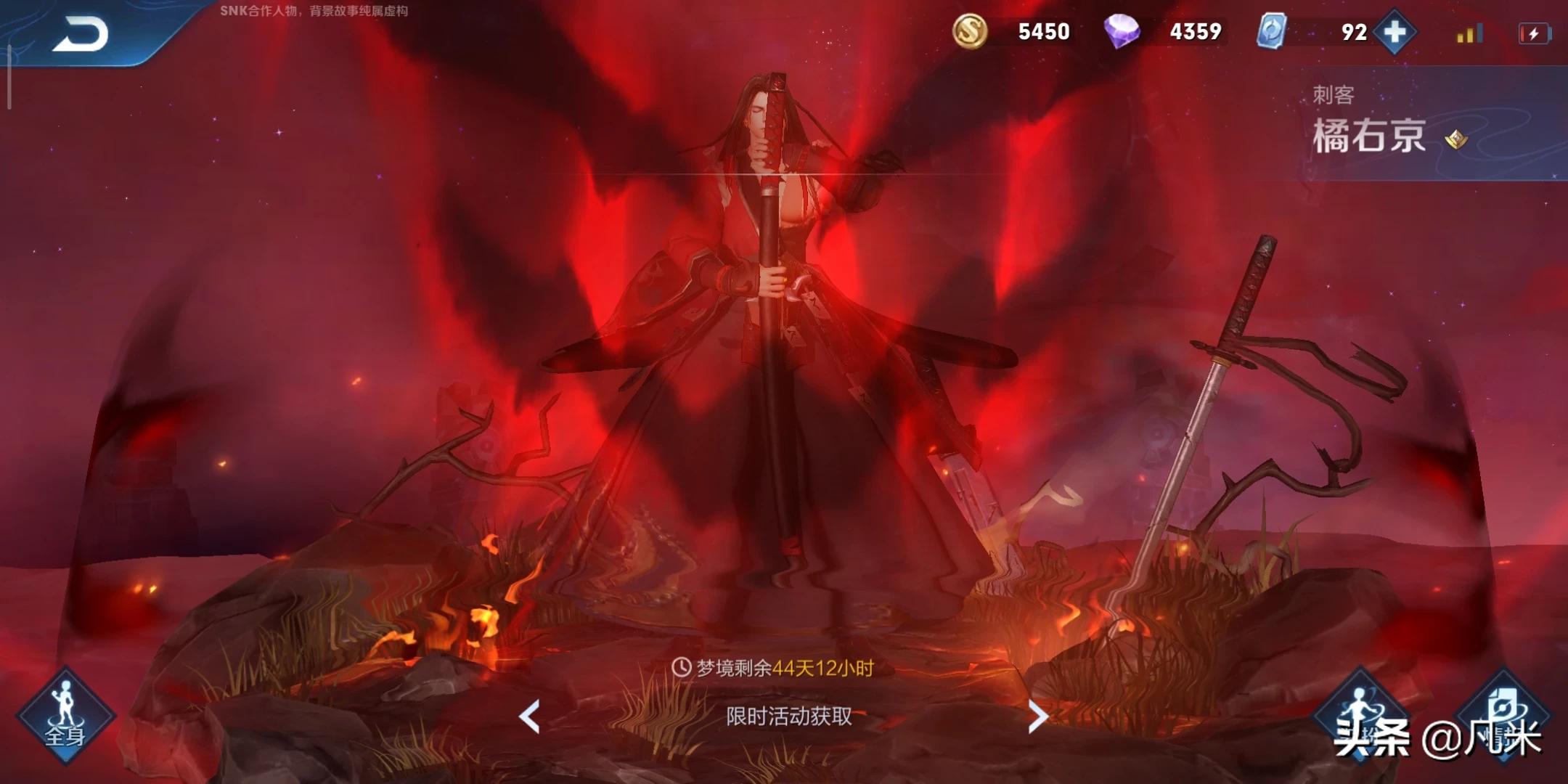 如何获取橘右京修罗皮肤s29