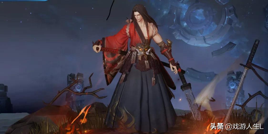 刀气附带火焰效果:利用修罗战场的背景渲染橘右京这名日本刀客,出场动画显示出威风凛冽,又不乏英俊帅气。修罗在技能特效增加“刀气”附带“火焰”的元素,每段刀气都散发出火焰翻腾的生动鲜活,这里可以参考韩信飞衡技能效果,但是橘右京技能效果绝对是过之无不及。