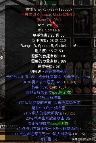 5凹槽白色剑或斧子。顺序:15#+1#+26#+9#+25#。选择底材最好是无形的巨神之剑,因为野蛮人可以单手装备双手剑。高输出,高达50%CB,高DS,7%LM。搭配2孔年纪镶提速珠,非常给力。