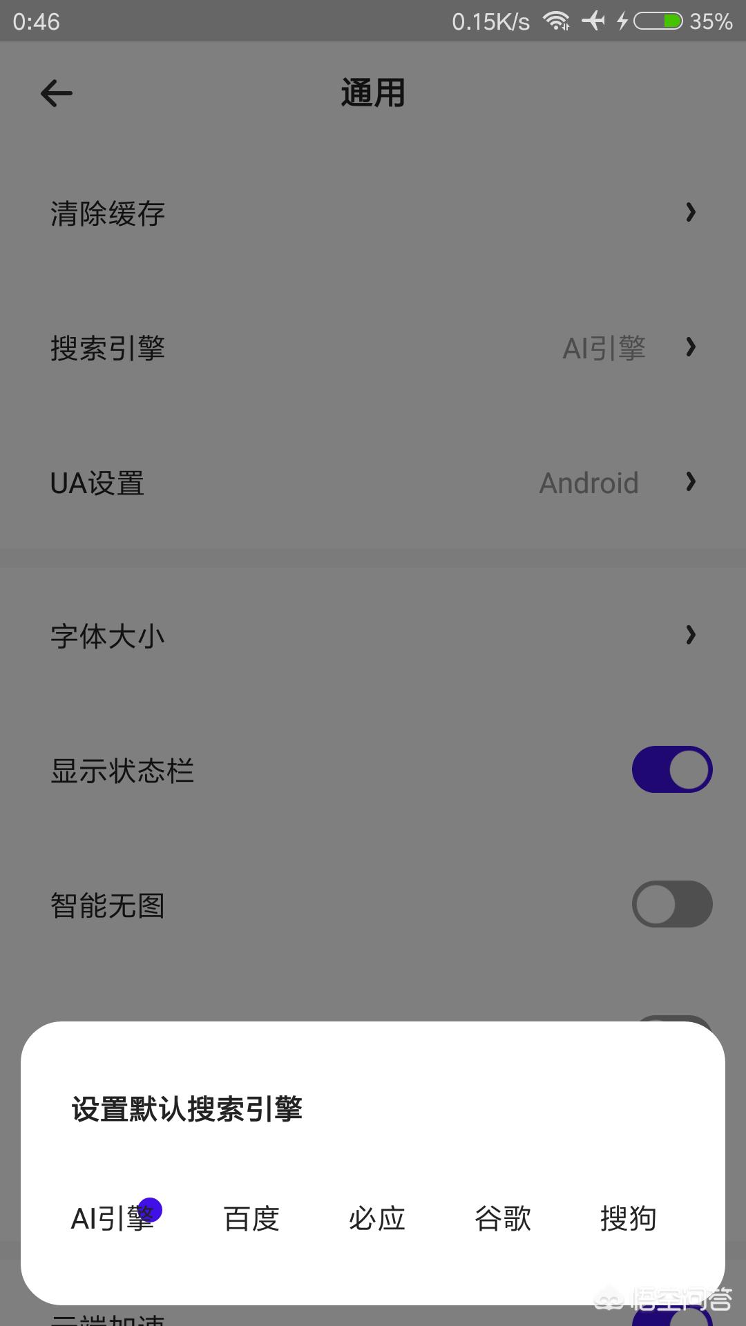 3、搜索引擎支持AI,百度,谷歌,必应,搜狗。其中AI引擎搜索,答案精准,会智能去广告推广内容,节省用户碎片时间。