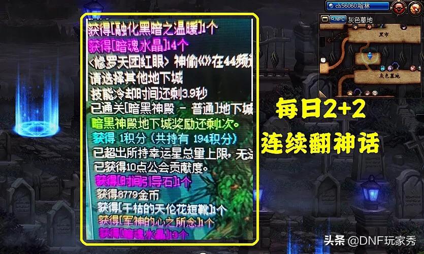 DNF100级版本,在3.19版本更新以来,玩家们每天的游戏安排,基本就两件事,【每日2+2】和【新深渊】,然后每周2次洞察之眼,2次魔界大战,2次漩涡和普雷,在这一系列的日常活动中,玩家们的所有动力,都指向一个目的:史诗毕业,神话加身!而就目前版本而言,神话装备获取途径只有三条,深渊随机掉落,每日2+2翻牌获取,每周洞察之眼Boss随机掉落,想获取神话,难度系数很大。