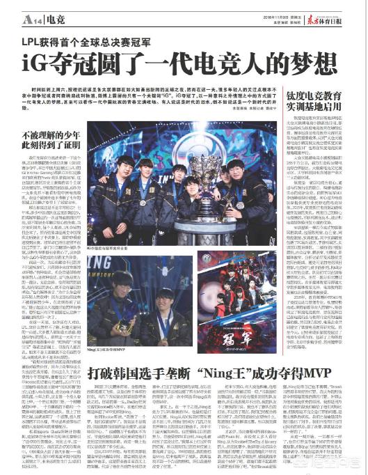 东方体育日报报道IG夺冠新闻,网友说"好大的版面,真排面",你怎么看