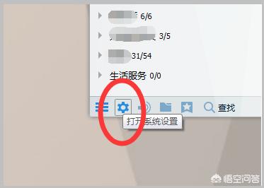 1、首先打开QQ面板,点击面板右下角的齿轮按钮,该按钮为“系统设置”按钮。