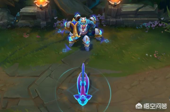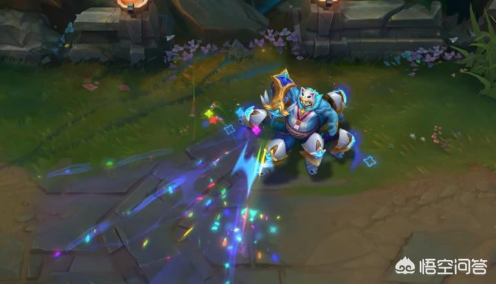 而就这款皮肤的外表来看,他与EZ的睡衣守护是同种装饰,六只脚都是蓝色猫咪鞋,右手装载着EZ同款特效炮,直接面部则是带了一个星之守护的口罩。虽说看起来比以前颜值搞了不少,但设计师也没改变厄加特固有的体型,这不,虽说变身了,该有的大肚腩可是一点都没有落下。至于特效也都是杠杠的,Q技能射出小猫咪一只,炮筒后还会有彩虹散光。