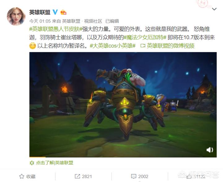 在官方的皮肤预告视频中,我们可以看到厄加特新皮肤的一些特效,但他的肢体动作却令不少玩家刷屏:可爱。在峡谷中,厄加特与小炮、小法的愚人节皮肤擦肩而过,在看完了他们装扮后,厄加特直接开始了“变身”,从六只脚到支架,再到身体以及头部,厄加特都进行了换装,并且在最后还手握萌宠一只。变身画面过于“美丽”,建议大家忘记厄加特原型酌情观看。