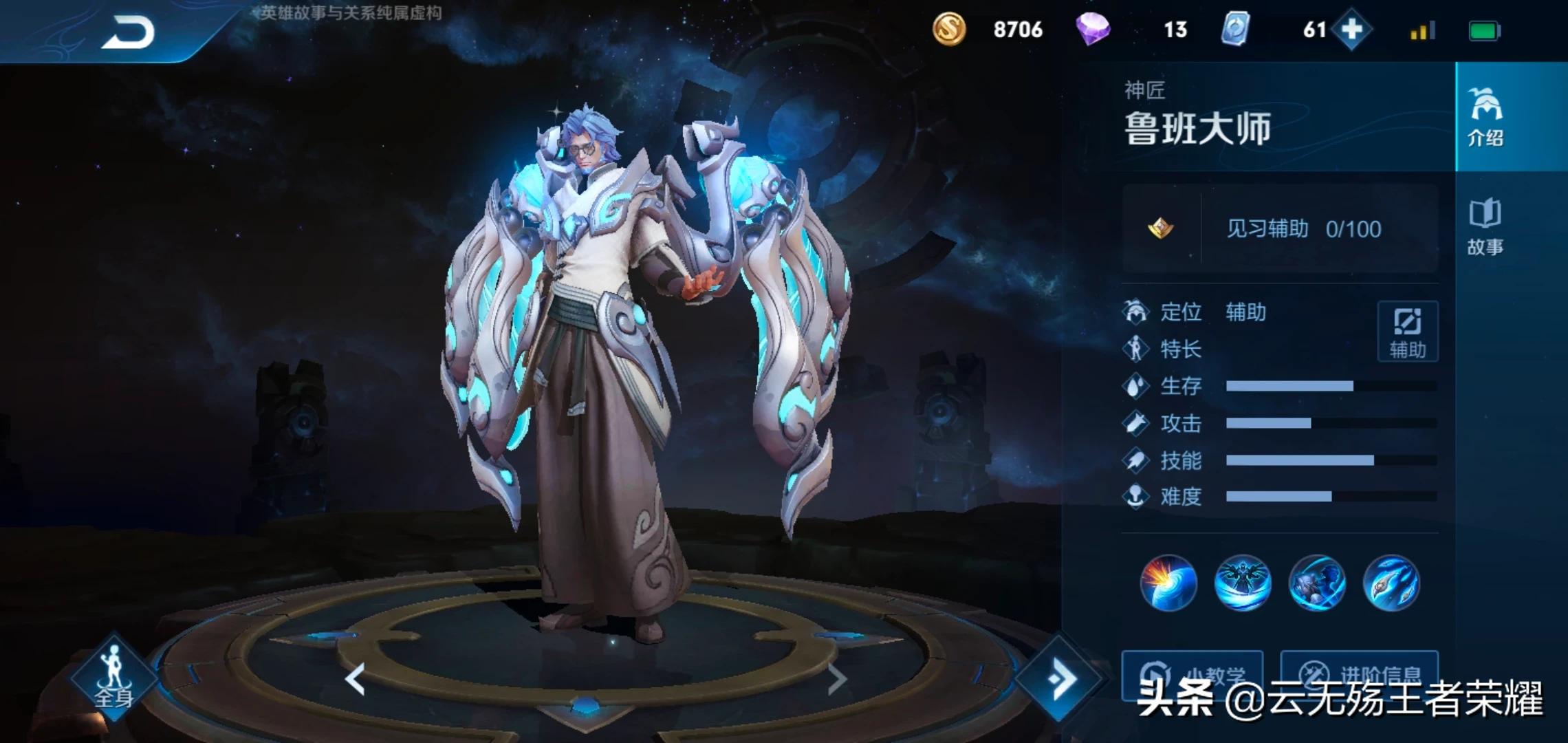 新英雄鲁班大师的场上定位是辅助,保护队友的能力和控制能力比较强,嫩够让友方英雄迅速地发育和加强输出。