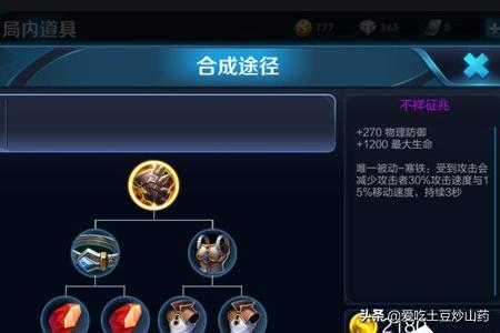 推荐装备为:隐忍之足+暗影战斧+反伤刺甲+不死鸟之眼+破甲弓+不详征兆