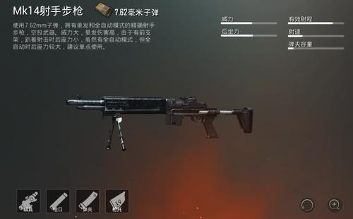 6. Mk14 EBR(半自动狙击步枪):射速快,精度高,适合中长距离战斗。