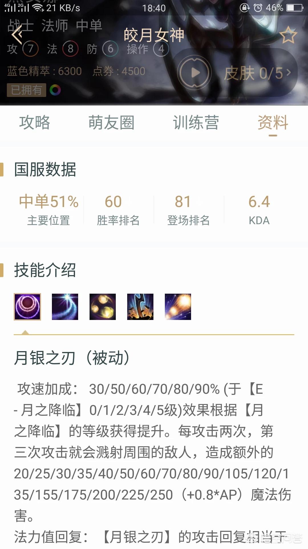 皎月女神可以打中单,也可以打野。对线期猥琐,六级以后直接一套带走,出门多兰戒,然后出纳什之牙。