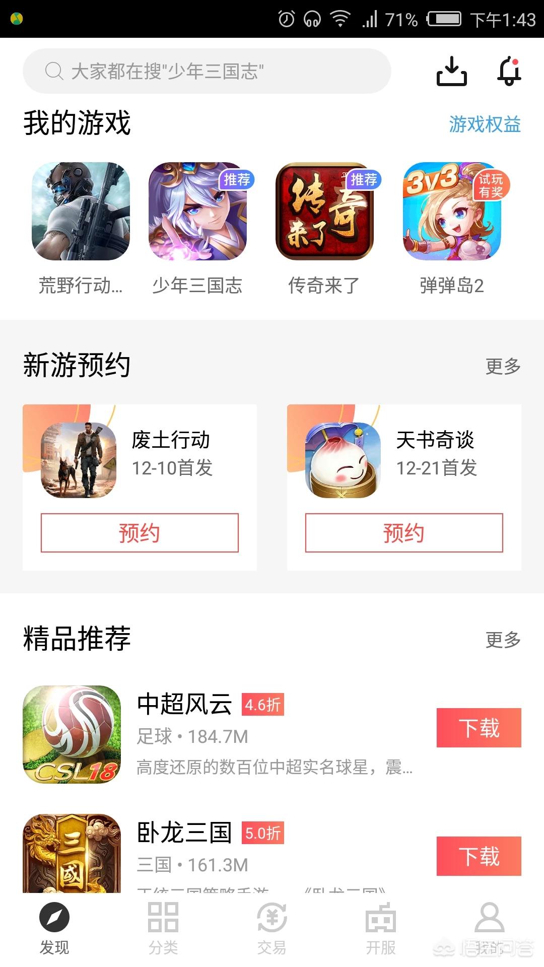 我也玩过九游,九游没有折扣的,升级vip会有一些游戏礼包,所以我就没有在玩了。最近发现了一个新的游戏平台,就66手游,有充值返现,打折,可以和官服玩,听说最近和叉叉助手合作了,充值还有脚本可以用。感觉挺不错的,希望可以帮到你,下载手机app就可以玩哦