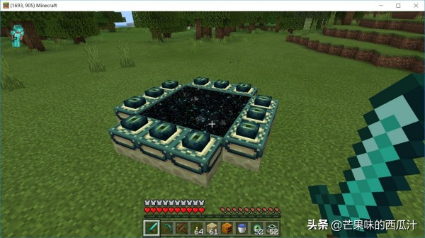 2、再次进入末地。可以去原来的地牢进去,也可以自己摆。末地传送门无法制造,只能开创造模式。
