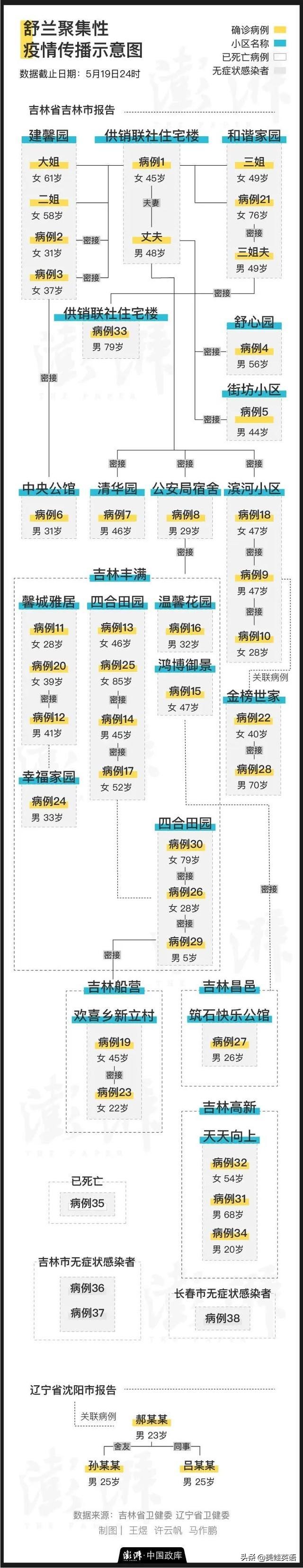 要知道吉林省从5月8号1号病人出现后,到5月19日,这条传染链已经导致46人被感染,包括43名确诊者和3例无症状者。并且出现了跨城市传染,尤其是在最近的8天时间里,本地新增病例每天都在增长。特别是在5月19日,吉林省通报了新增的5例确诊病例,传染链条第一次出现了“断链”。居住在吉林市高新区的2例确诊病例,和此前任何一例确诊病例都没有关联,
