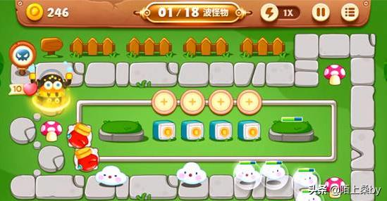 2,左边先不管他了,我们要完成清理大树的任务,右边放上章鱼来攻击标道具,还能清理怪物。