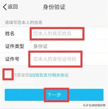 6.然后输入本人真实姓名,填写身份证号码,勾选同意相关协议,再点击下一步。