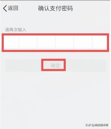 8.再次输入六位数的支付密码,保证前后两次输入的密码一致,然后点击确定。