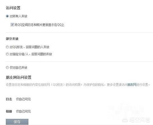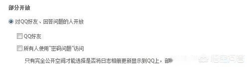 选择“对QQ好友、回答问题的人开放”时会再跳出两个选项,即“QQ好友”和“所有人使用"密码问题"访问访问”,根据自己的需要选择设置