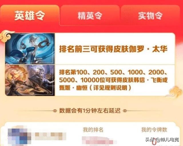 最值得一提的是这个令牌活动不仅可以收集令牌兑换皮肤,而且排名前三的可以获得伽罗的鼠年限定皮肤——太华,排名第100 200 500 1000 2000 5000 10000的玩家可以获得皮肤韩信的飞衡或者是甄姬的幽恒,可以说官方这一点是非常的人性化。包括排名是随机变动的说到底还要看自己的运气,感兴趣的玩家可以参与一下,其实这个活动目的就是为了吸引人气。