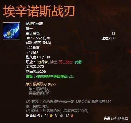 70版本毕业猎人(无橙弓),亲身体验,没有橙弓的猎人很难打过双刀贼,在输出手法差不多的情况下,双刀提供的套属属性是普通武器不能比的,而且太阳井的boss几乎都是恶魔,这让双刀的存在更有意义。如果猎人输出手法不差,拿上金弓的话,输出一般不会跌落前三(这里需要命中达标,宝石插满,团队装备都差不多的前提下)。这张图不是tbc版本的,但是套属没变。