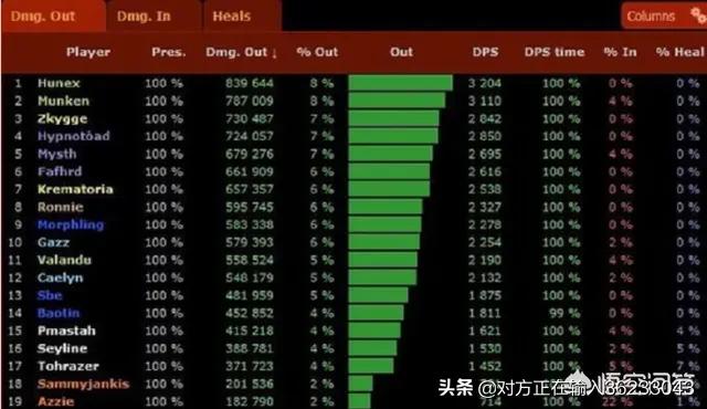 按理说术士应该排在第三名,但是从DPS数据上术士却只能排在第四名,当然术士排在第四名也是有原因的,毕竟这名术士使用的还是海山级别的武器,与其他职业还是有一定差距的。