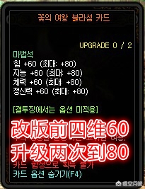 普雷副本产出的“花之女王卡”,发布之初,最开始的属性是魔法石附魔属性,四维加60,升级两次到四维加80;