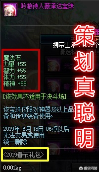 和今年国服的春节礼包的附魔宝珠四维属性55,仅仅只差5点,策划真是太聪明了!