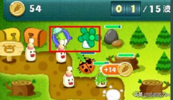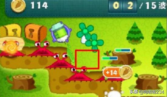 2、在萝卜的附近造一个单体攻击,攻击速度高的塔,1级基本就足够,后面几波再根据情况慢慢升起来。(个人比较推荐鱼骨,瓶子,魔法球等)。