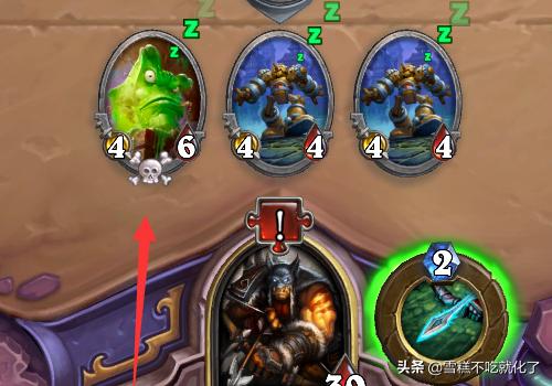 2、我们先用食肉魔块的战吼吃掉场上的发条机器人。